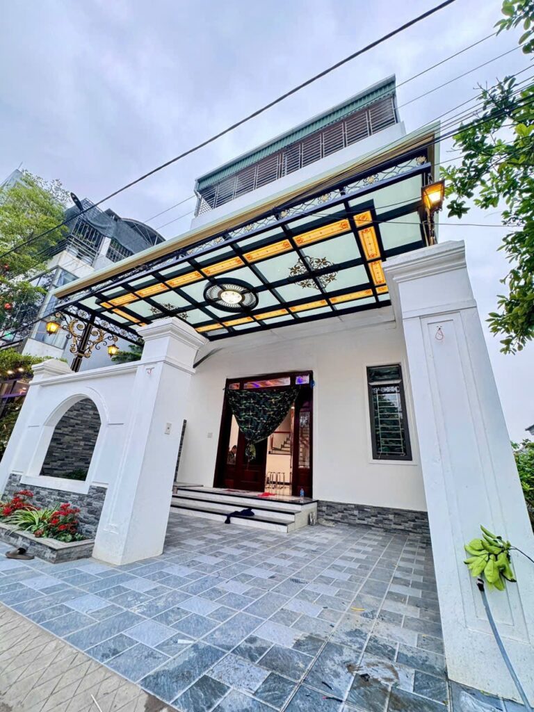 Mái kính sảnh giúp tăng tính thẩm mỹ, tạo sự chào đón sang trọng. Khung inox, khung sắt nghệ thuật đảm bảo độ bền, phù hợp với kiến trúc hiện đại.