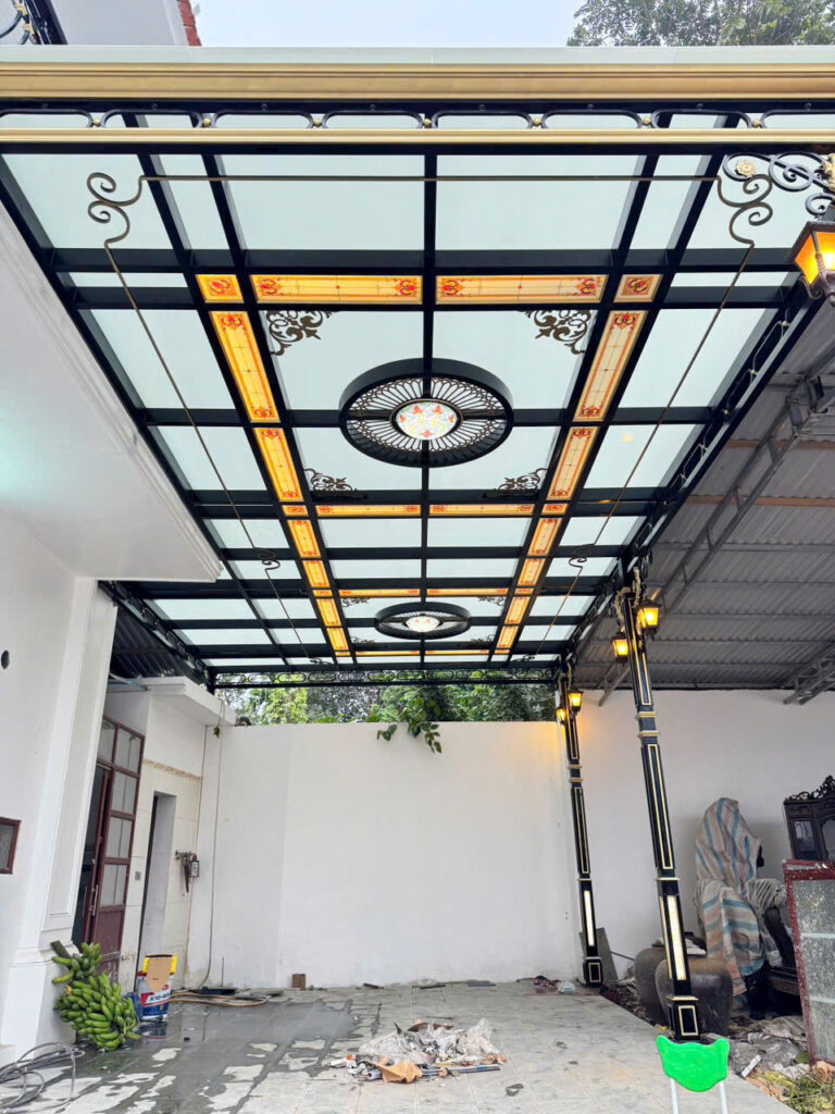 Bên cạnh mái kính, các sản phẩm sắt mỹ thuật khác như Cổng Sắt Mỹ Thuật cũng góp phần tạo nên vẻ đẹp tổng thể cho công trình.