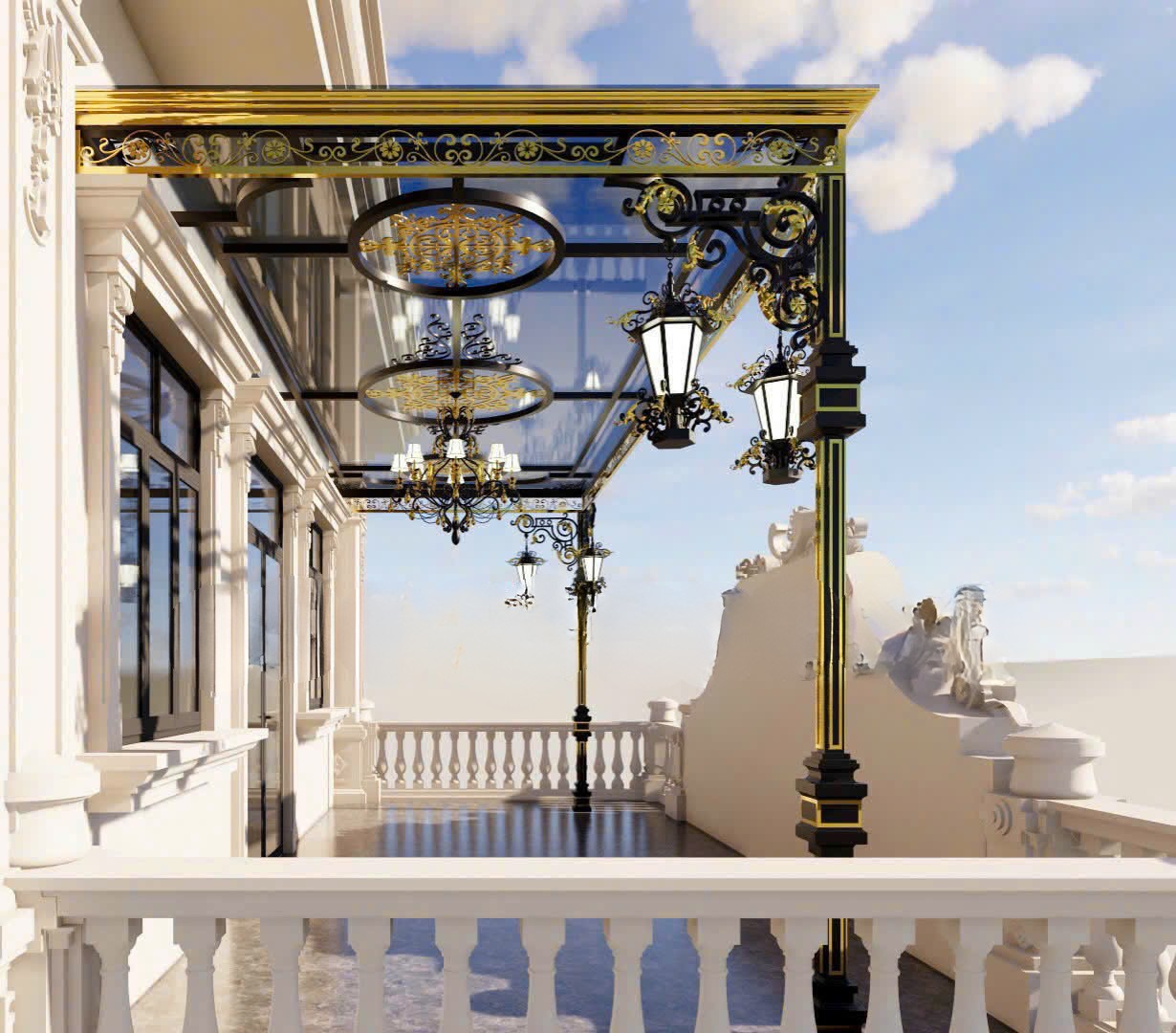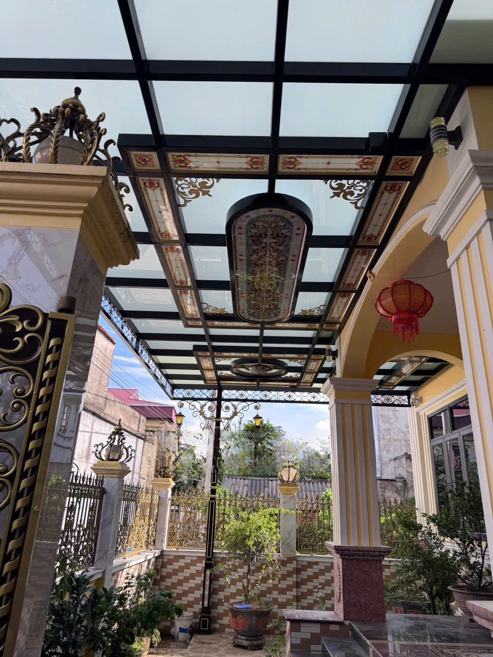 Bên cạnh mái kính, các sản phẩm sắt mỹ thuật khác như Cổng Sắt Mỹ Thuật cũng góp phần tạo nên vẻ đẹp tổng thể cho công trình.