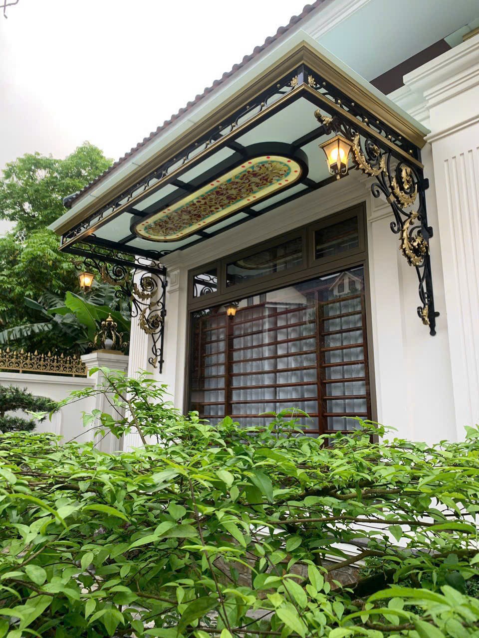 Mái che hiên kính không chỉ che nắng mà còn tăng tính thẩm mỹ. Kết cấu khung sắt mỹ thuật bền vững, hoa văn tinh xảo phù hợp với biệt thự và nhà phố.